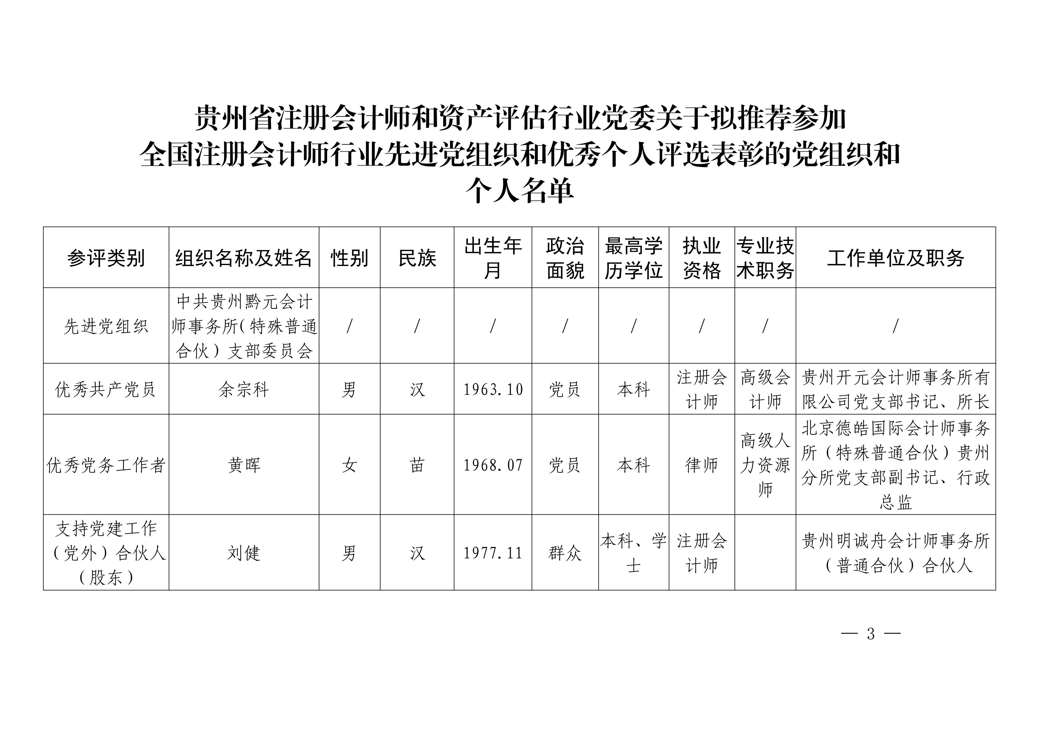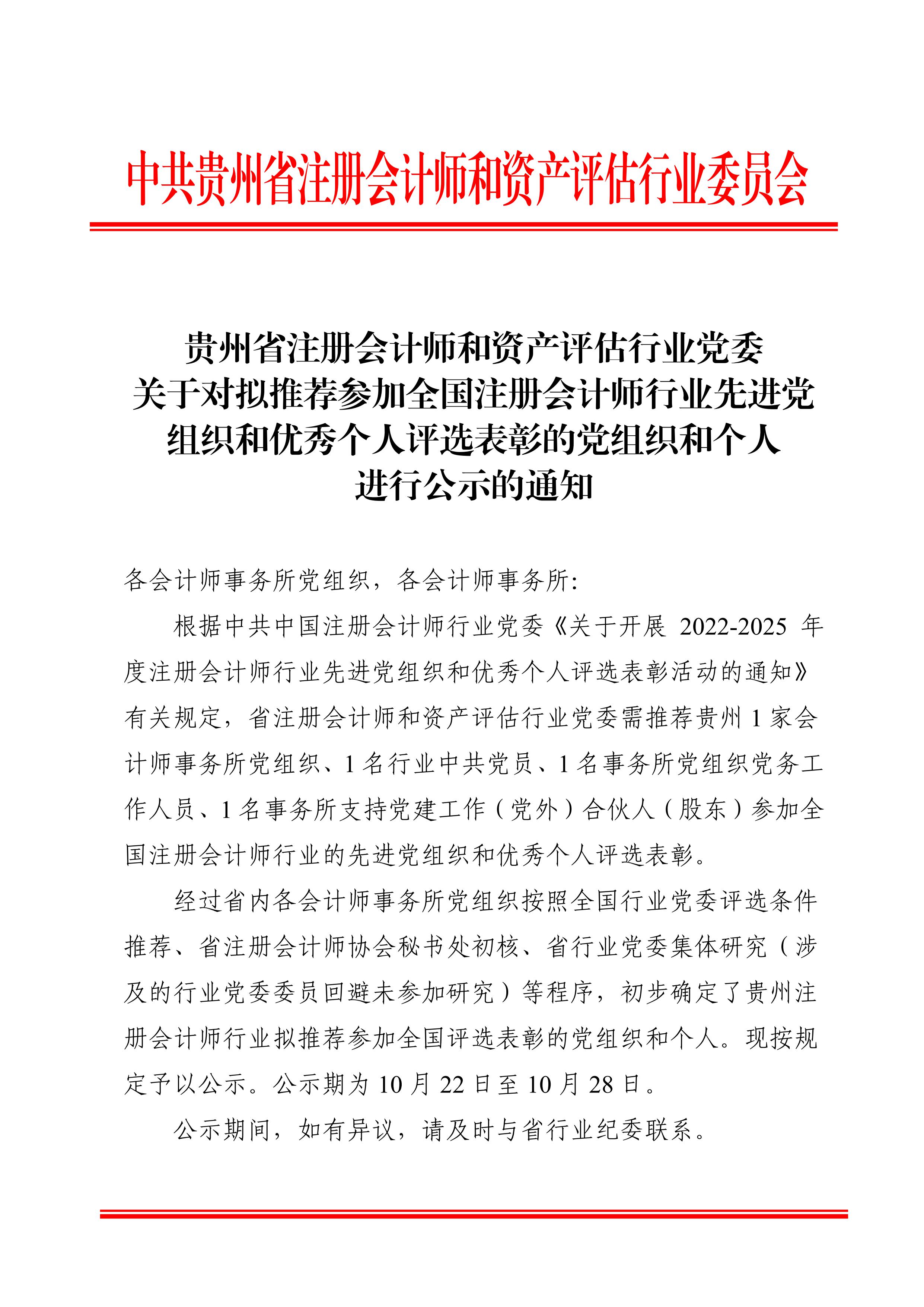 贵州省注册会计师和资产评估行业党委关于对拟推荐参加全国注册会计师行业先进党组织和优秀个人评选表彰的党组织和个人进行公示的通知