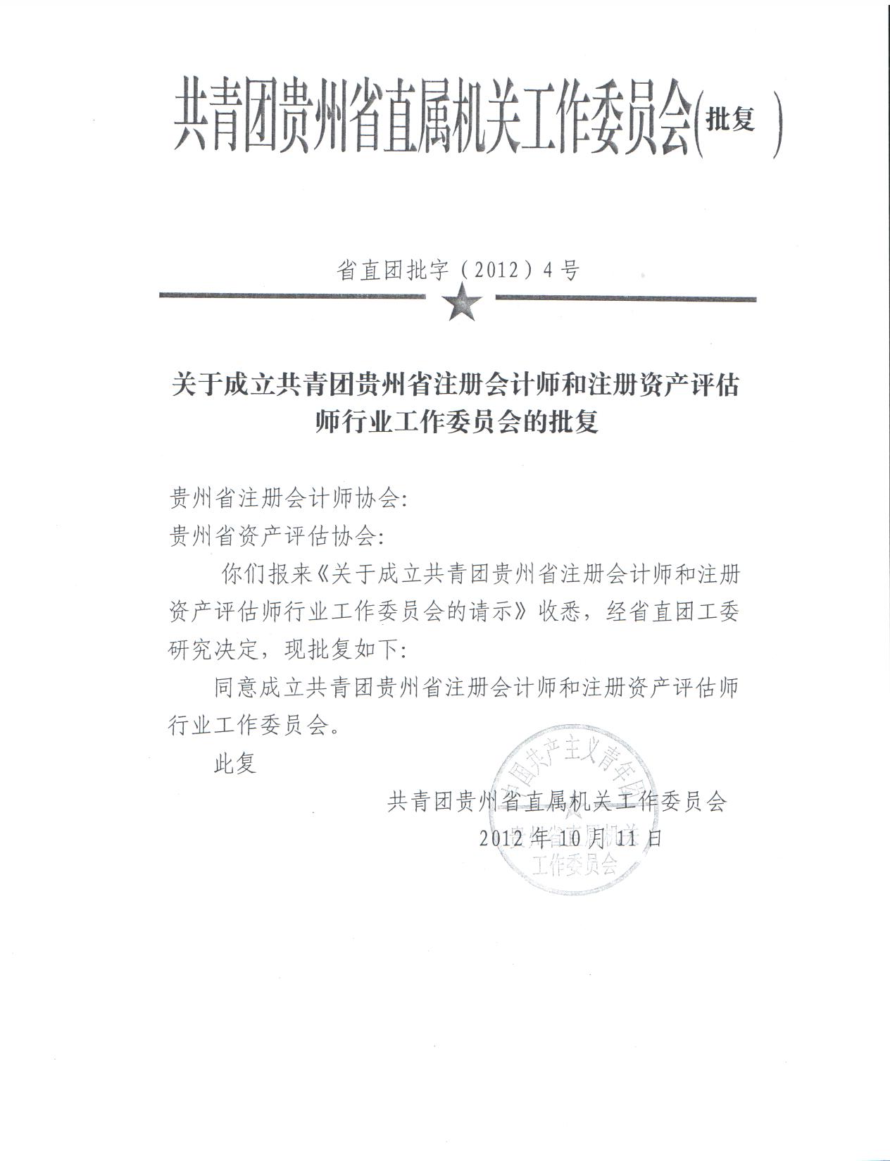 关于成立共青团贵州省注册会计师、注册资产评估师行业工作委员会的批复