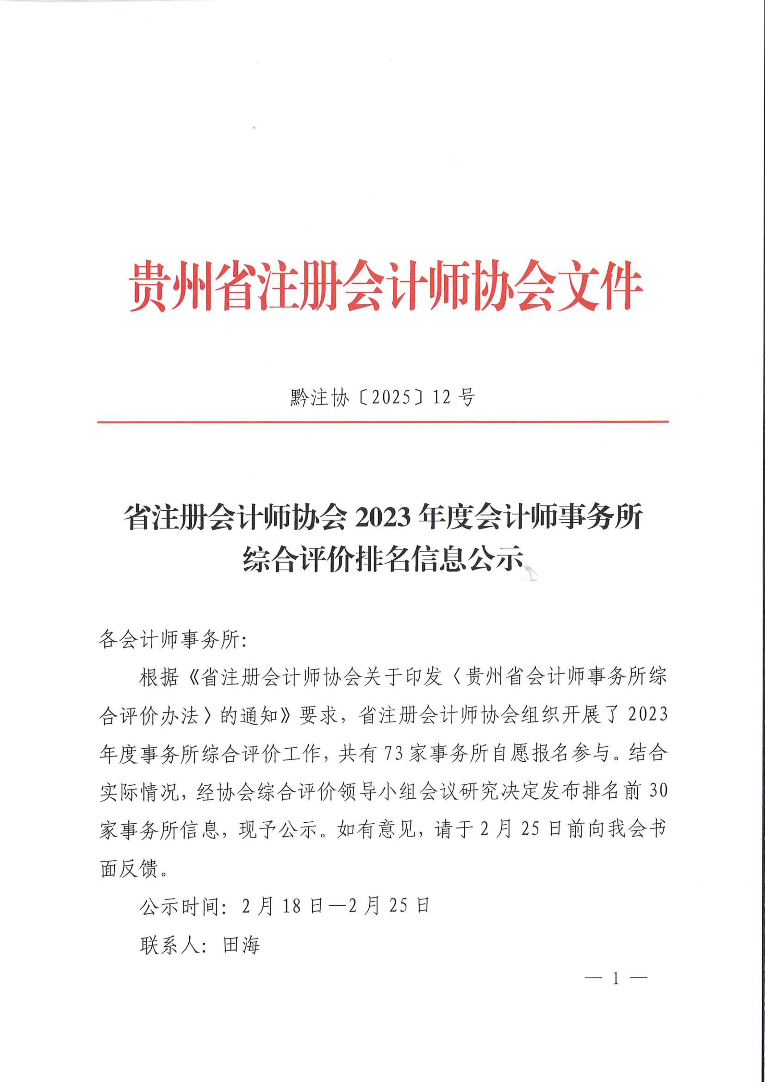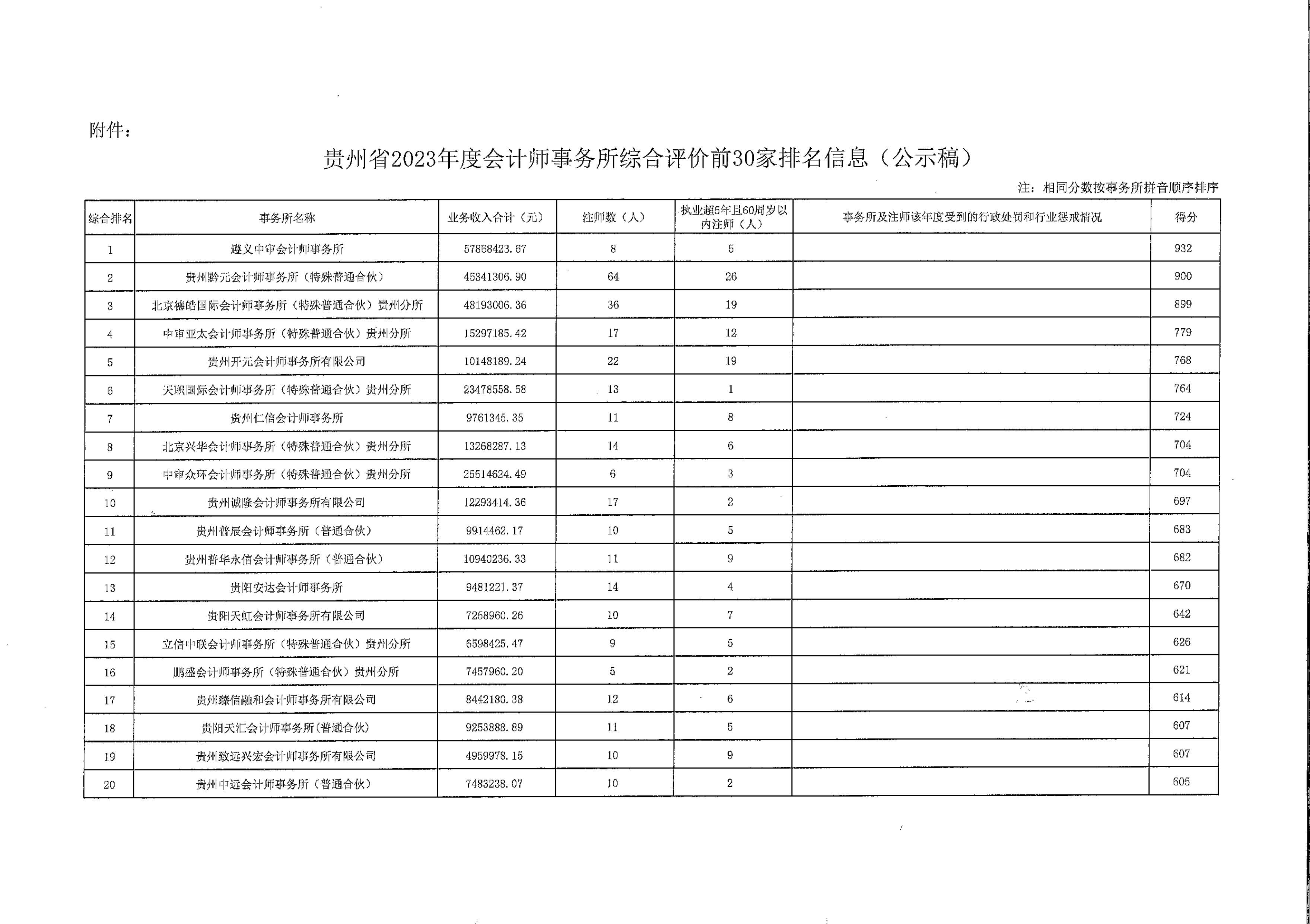 省注册会计师协会2023年度会计师事务所综合评价排名信息公示