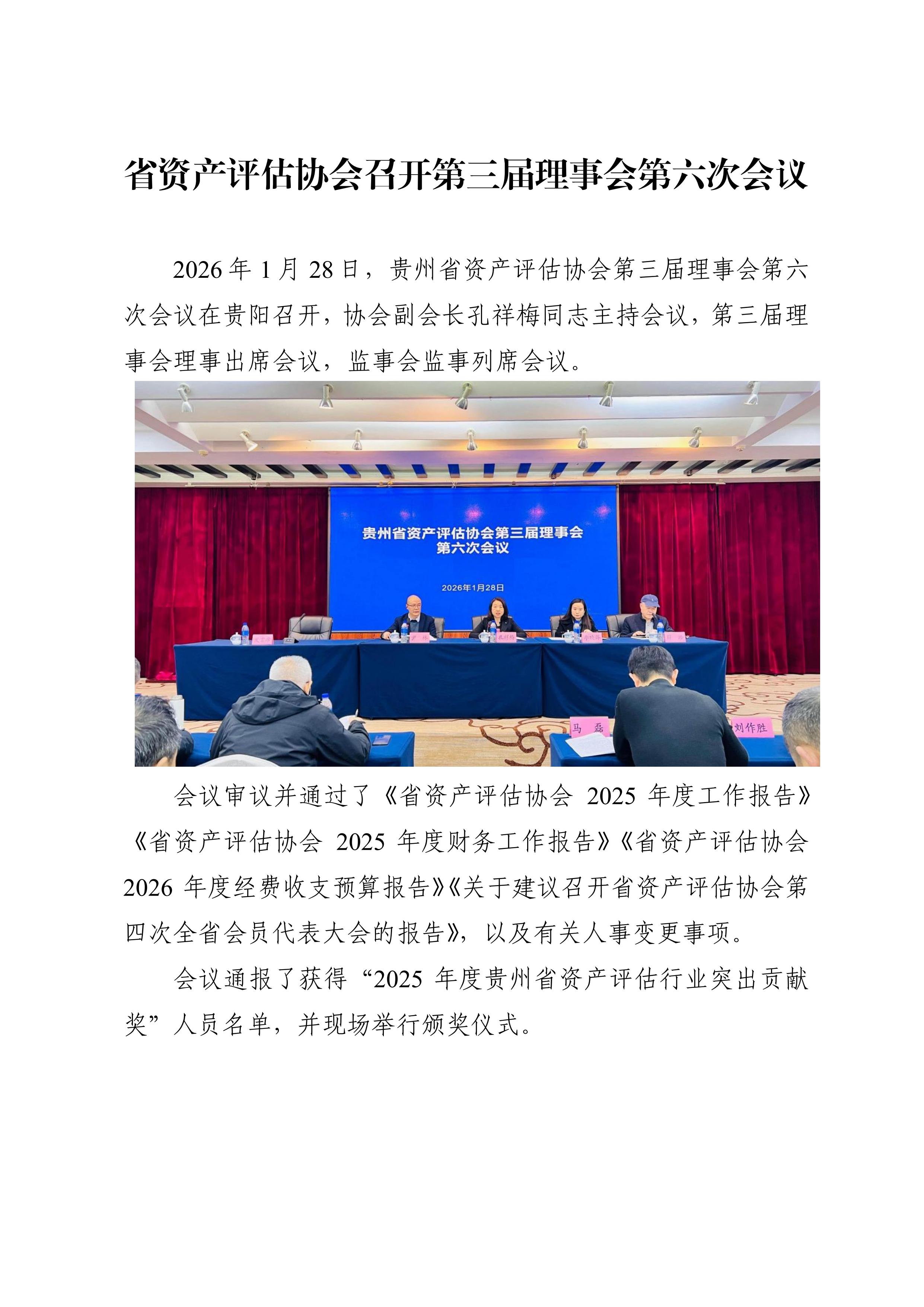 省资产评估协会召开第三届理事会第六次会议简报