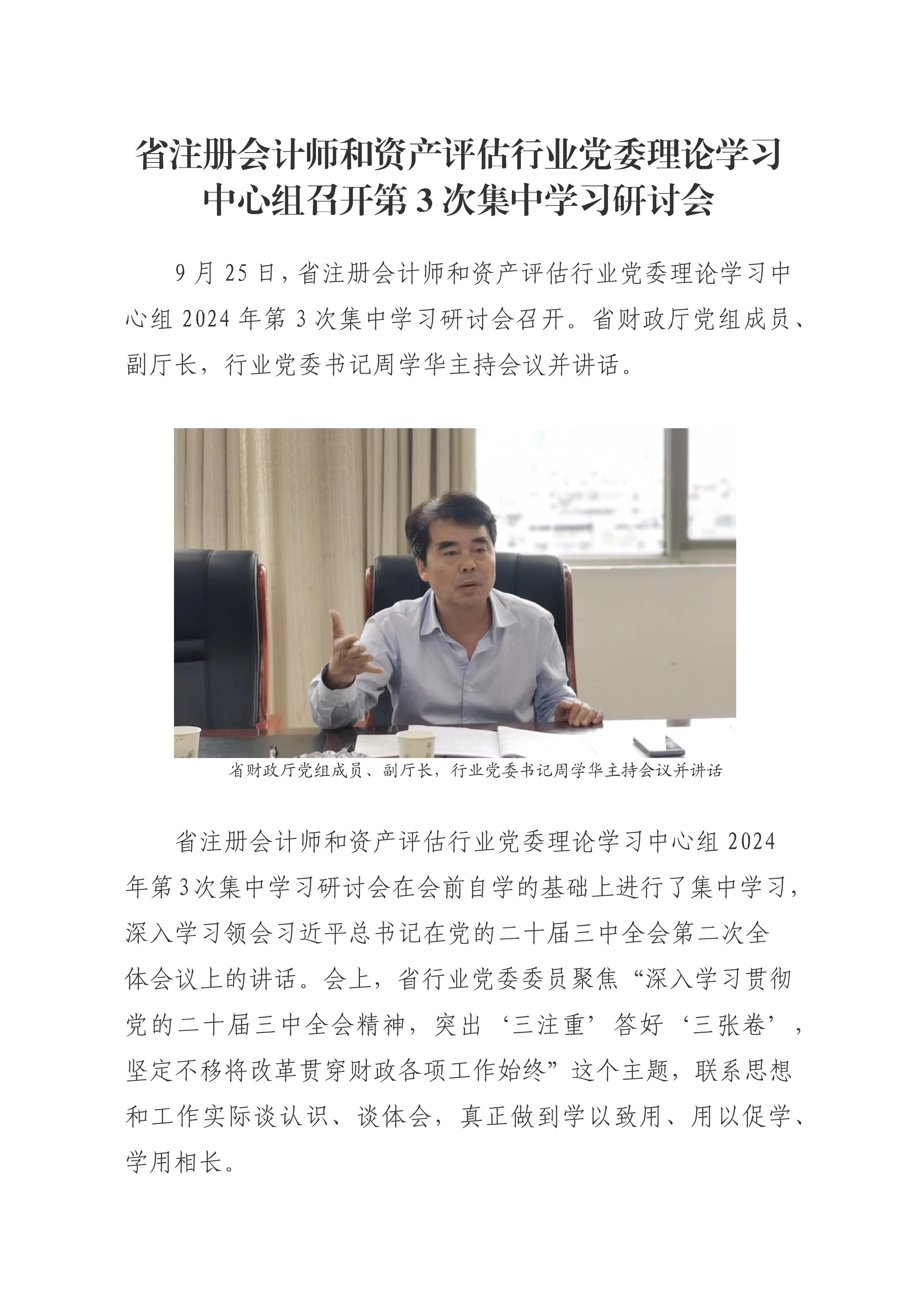 省注册会计师和资产评估行业党委理论学习中心组召开第3次集中学习研讨会