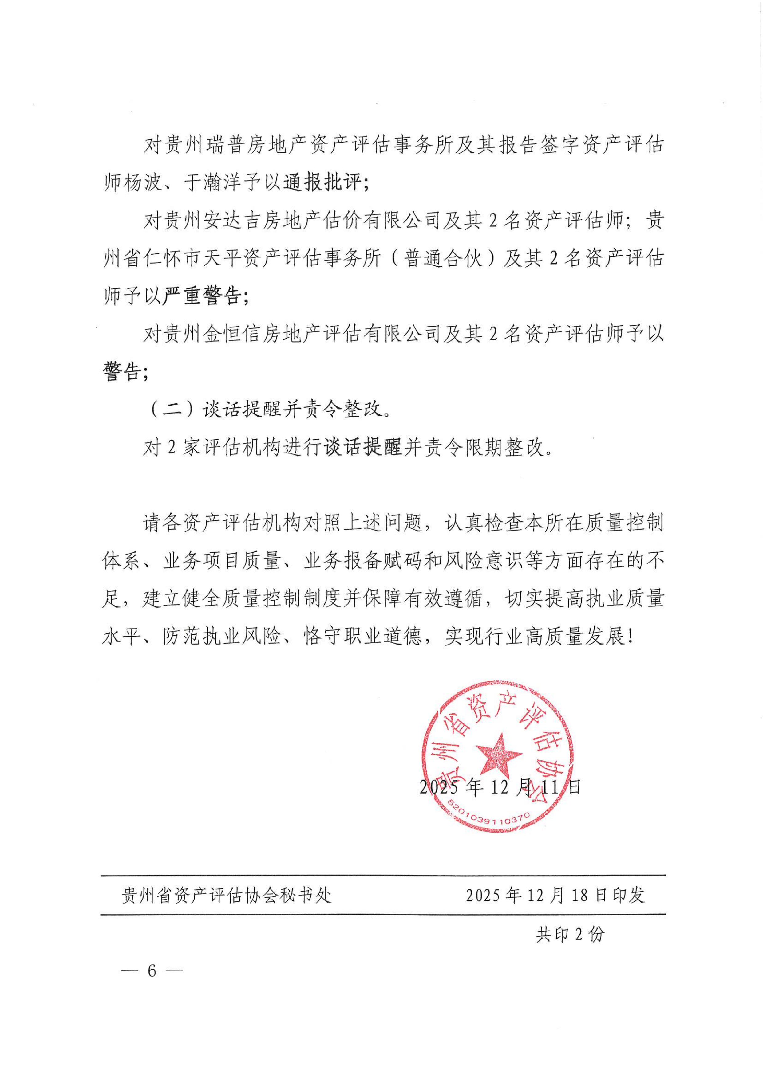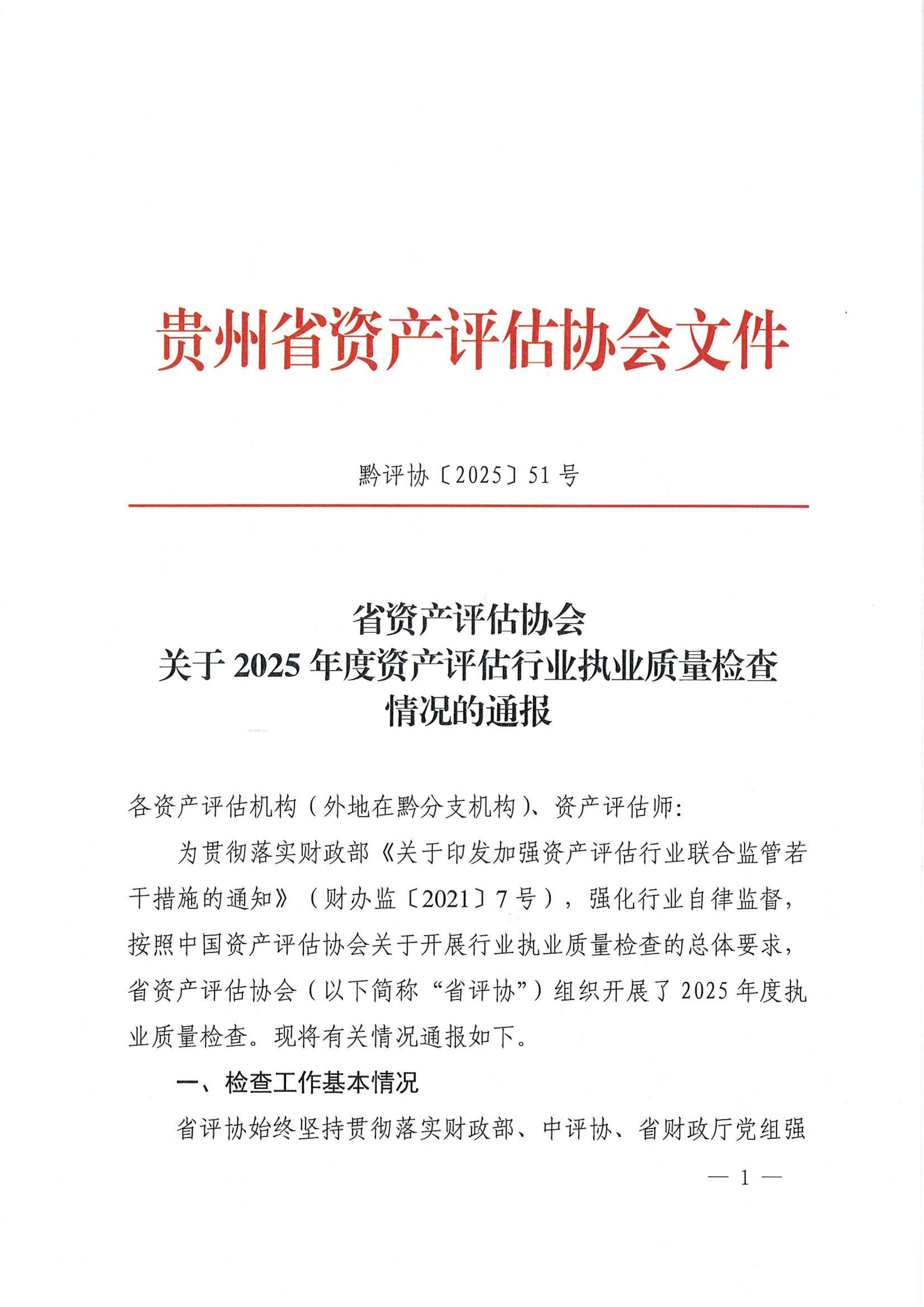 省资产评估协会关于2025年度资产评估行业执业质量检查情况的通报