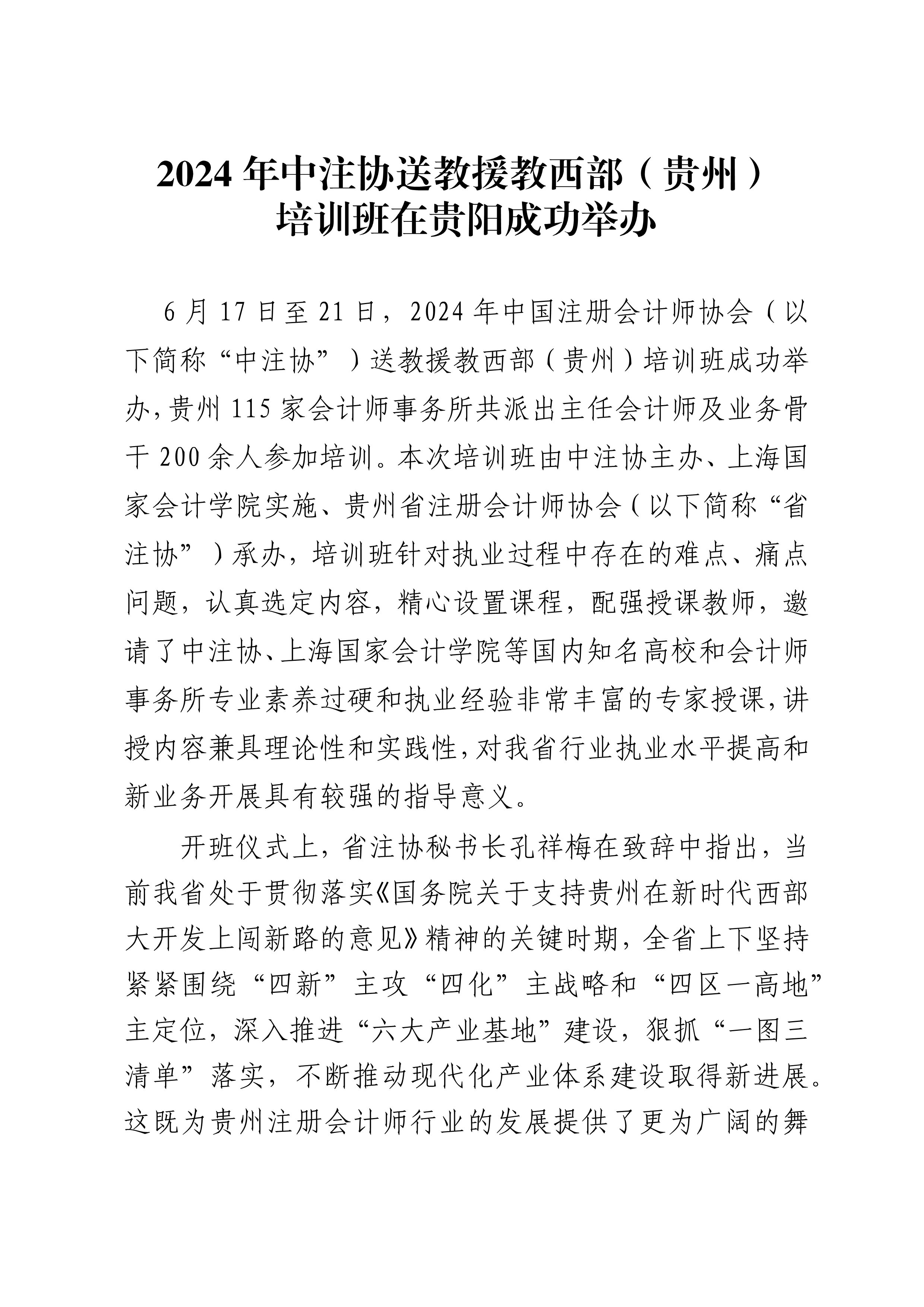 2024年中注协送教援教西部(贵州)培训班在贵阳成功举办